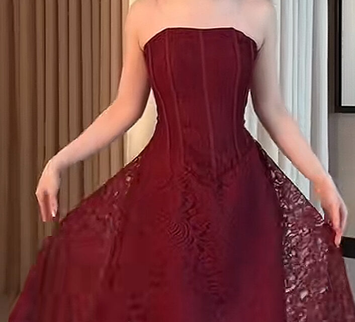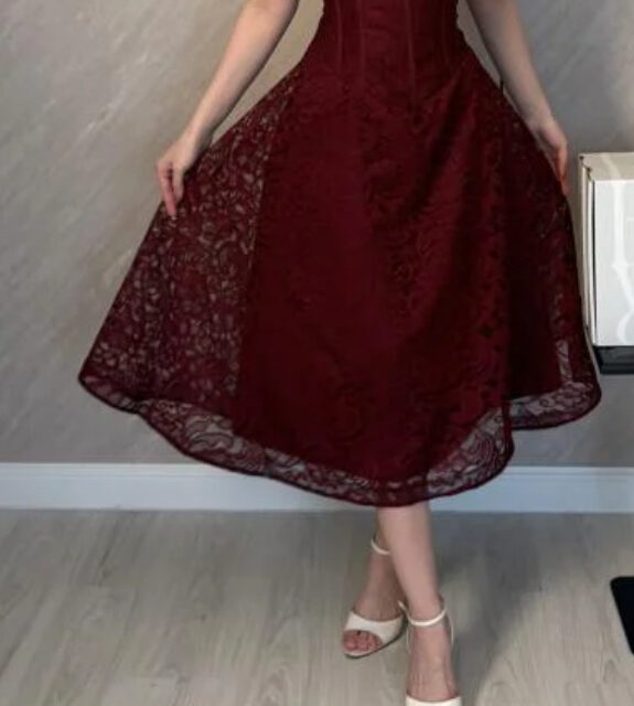 فستان ميد برغندي دانتيل